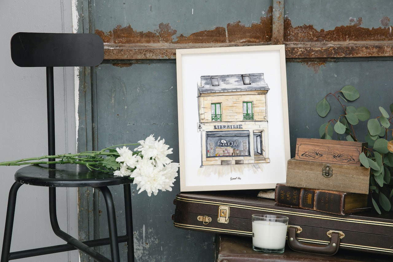 Dans mon atelier, je réalise chaque dessin à la main, généralement au crayon et à l’aquarelle.