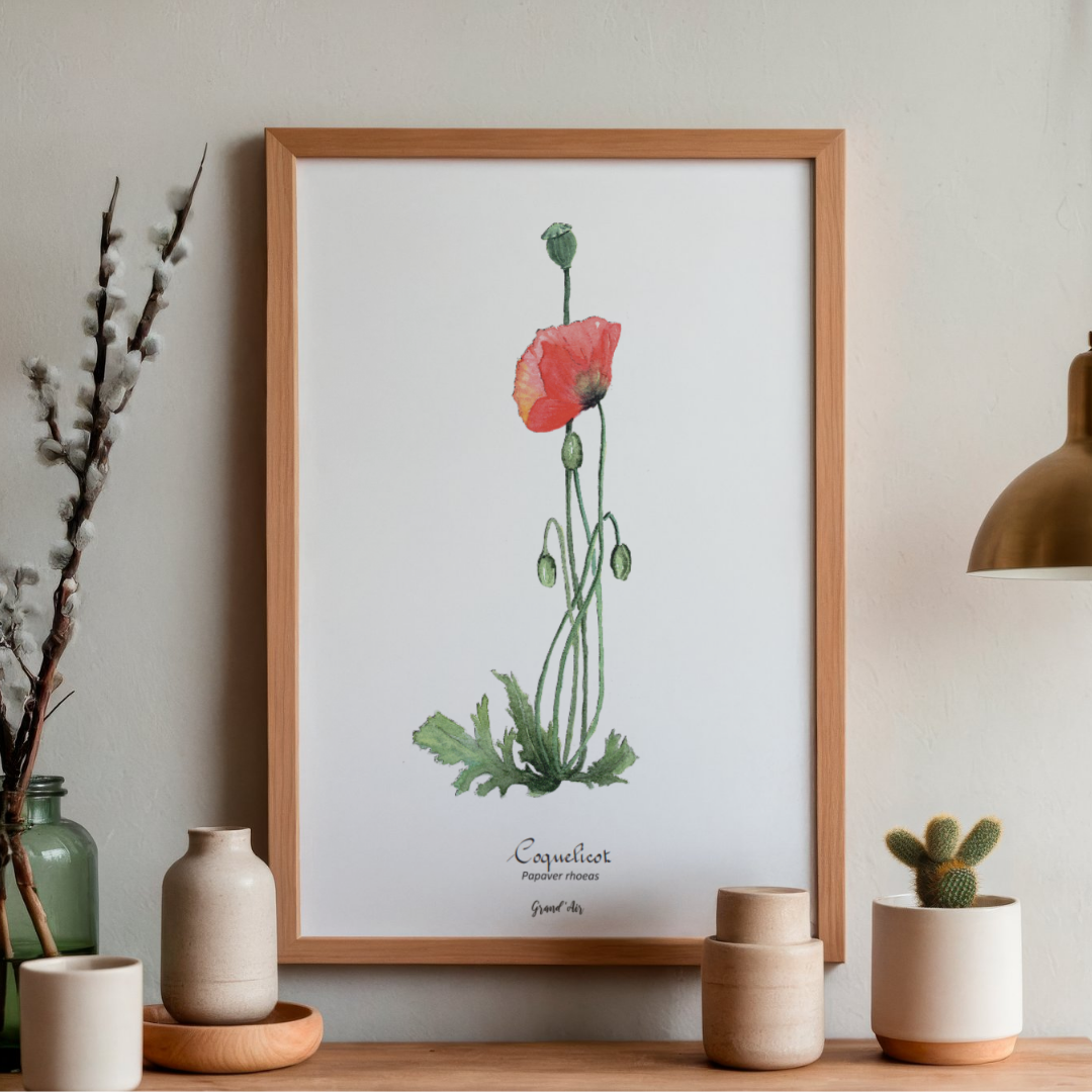 Affiche Fleur de Coquelicot, aquarelle, qualité tirage d’art.
