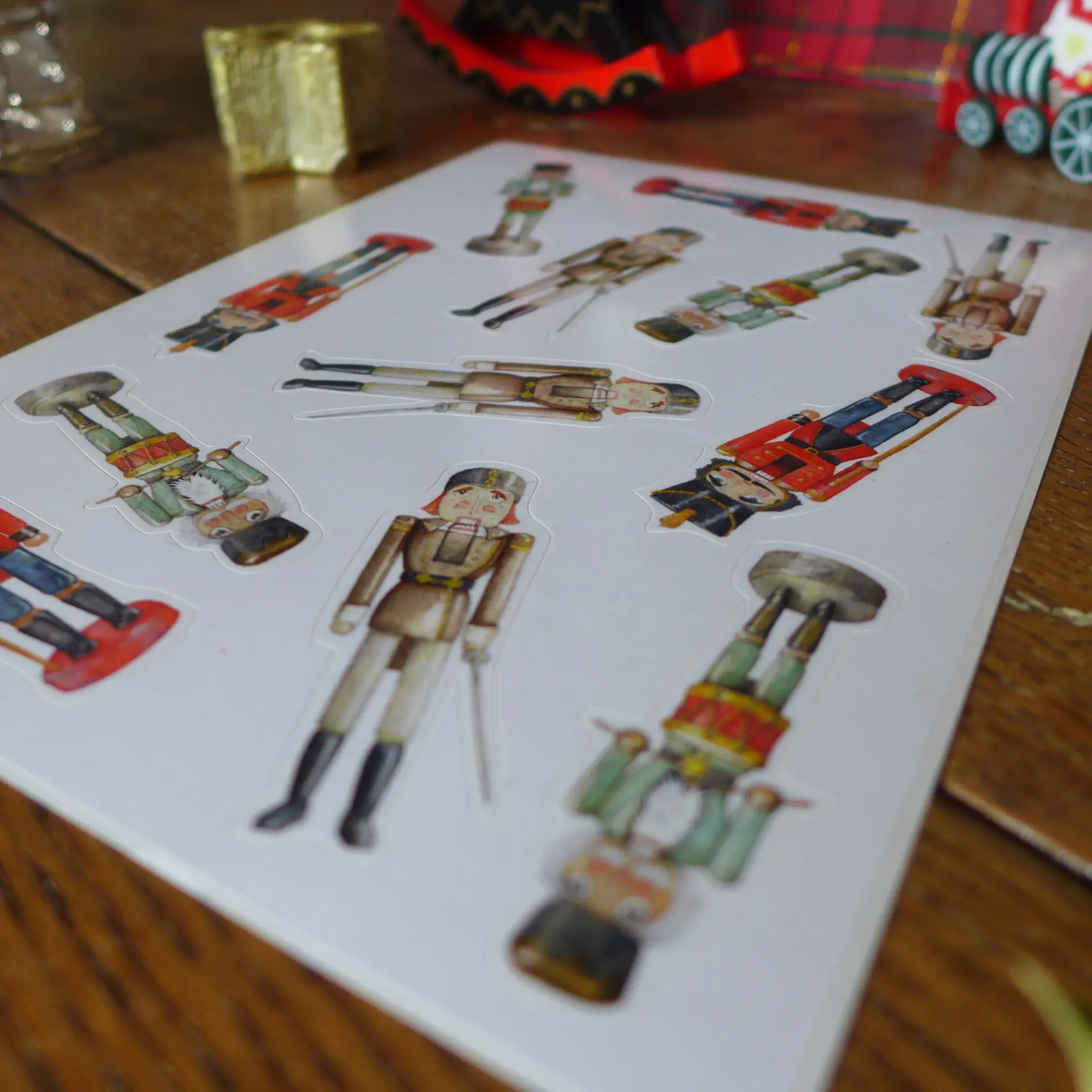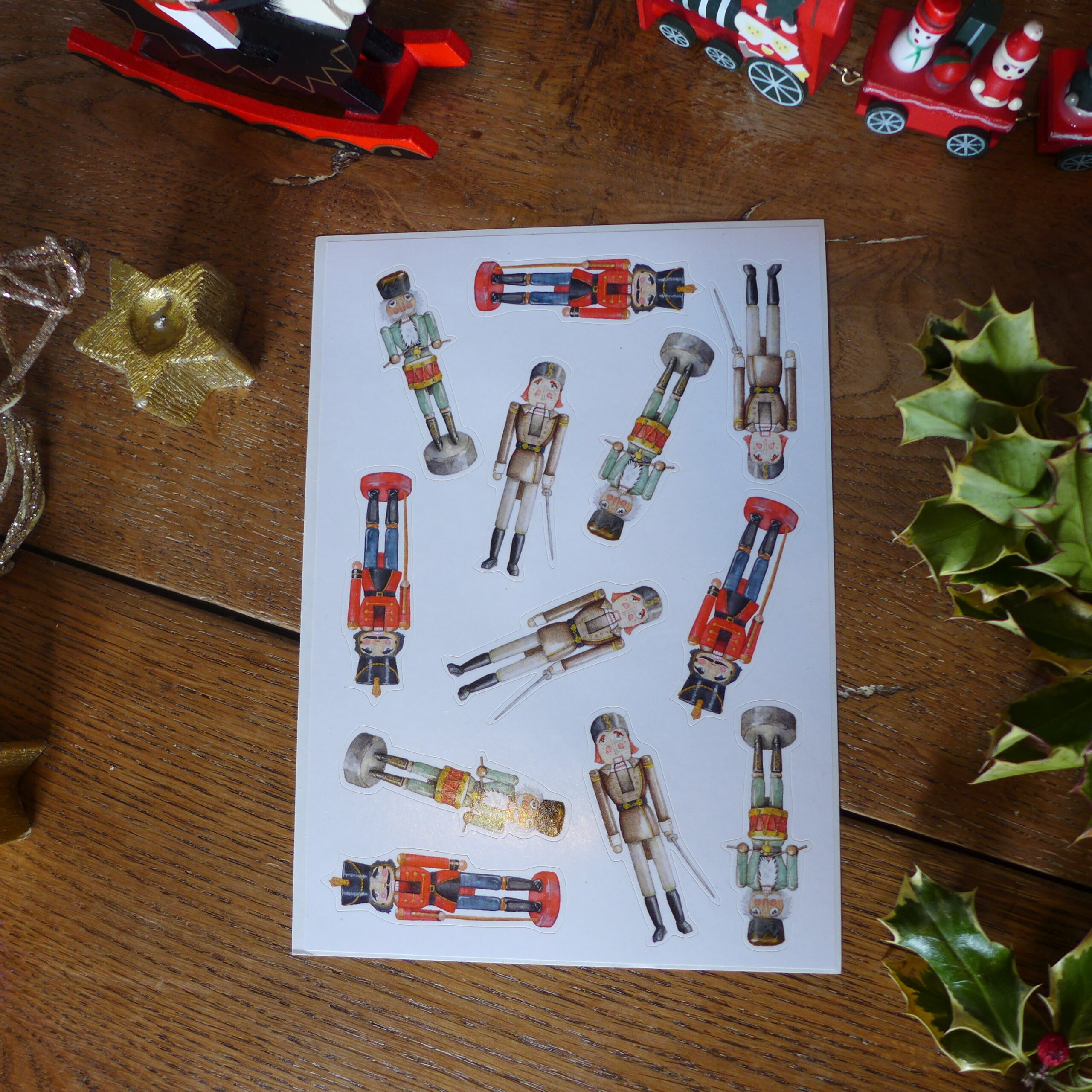 1 planche A5 de 12 stickers (4 exemplaires x 3 modèles de Casse-noisettes différents).