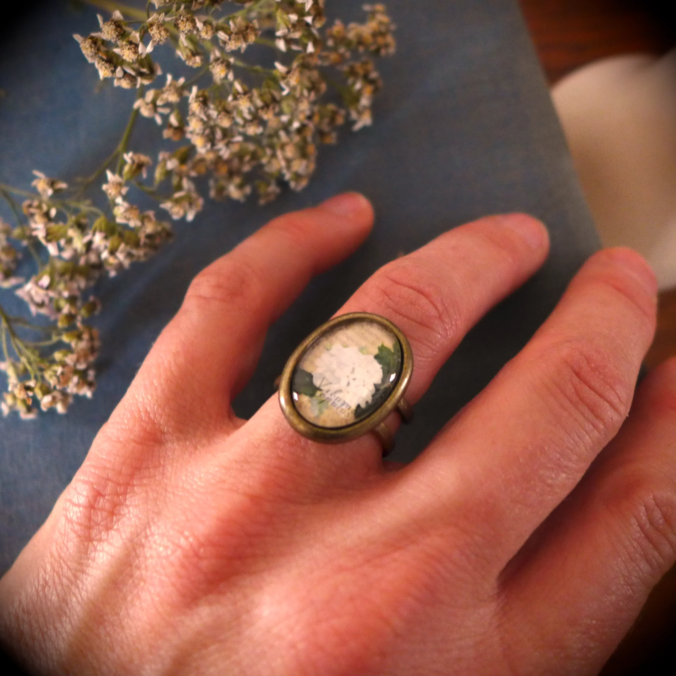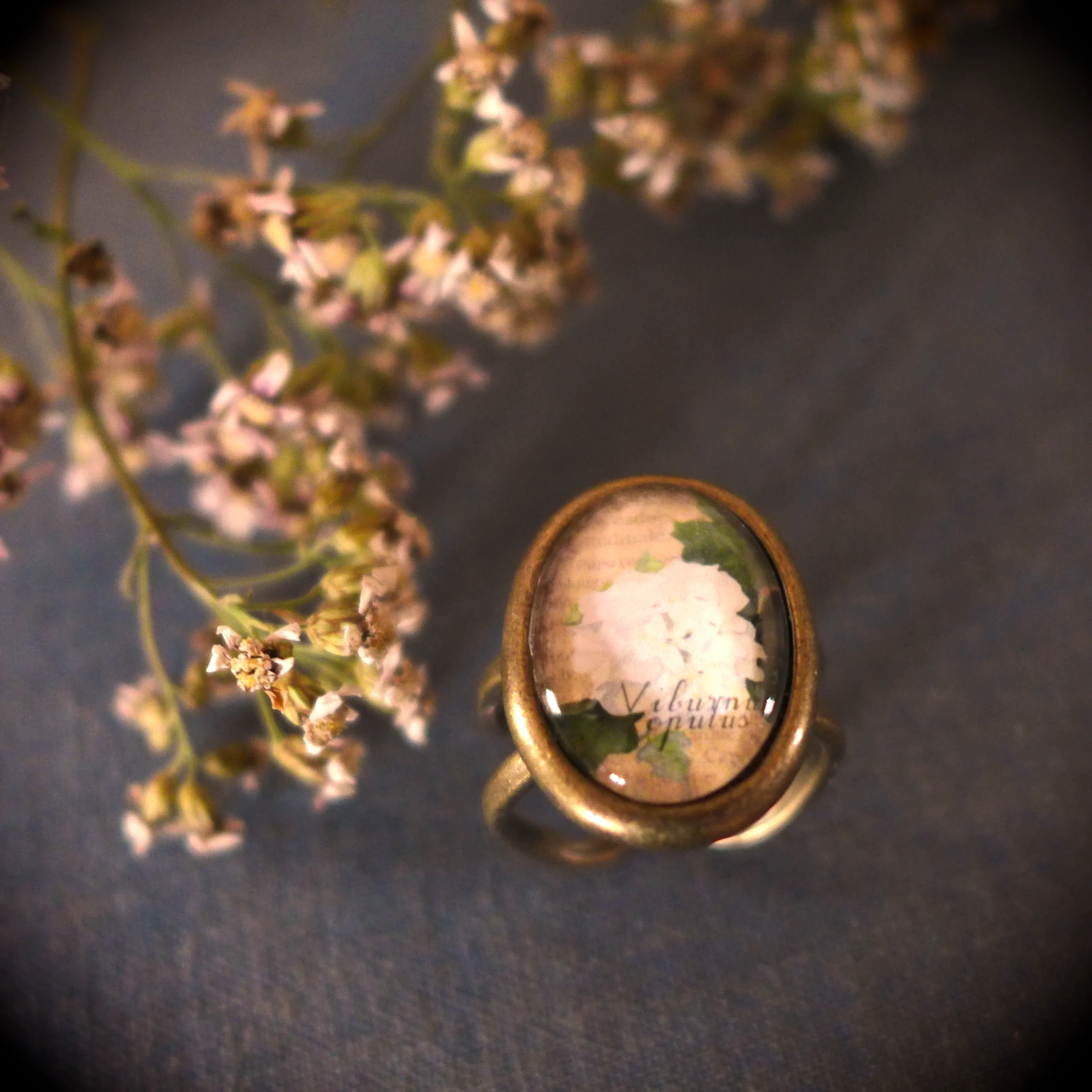 Bague Vintage Fleur de Boule de neige (Viorne aubier).