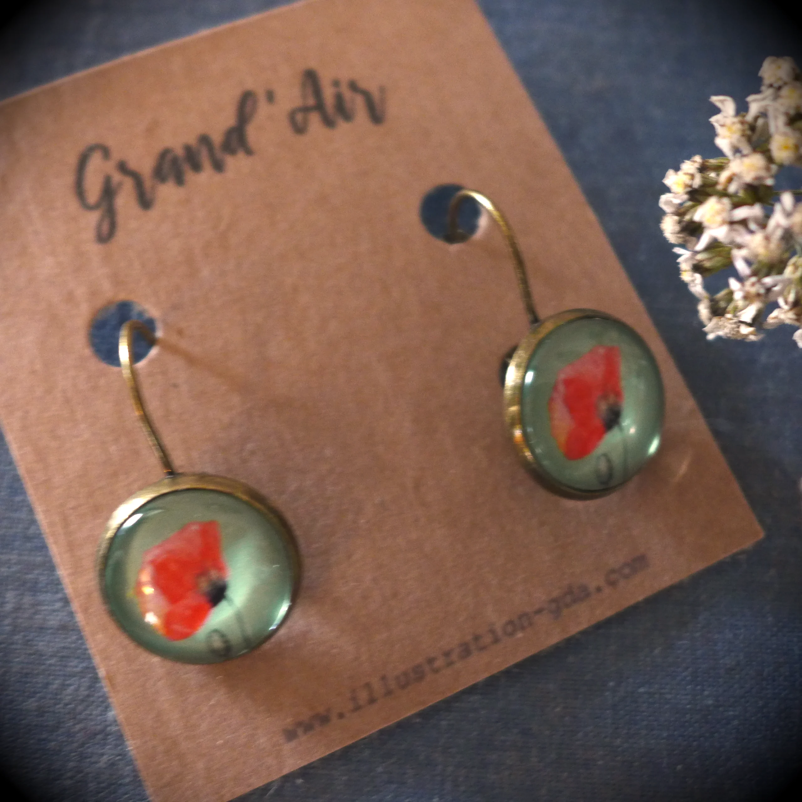 Boucles d’oreilles vintage Fleur de Coquelicot.