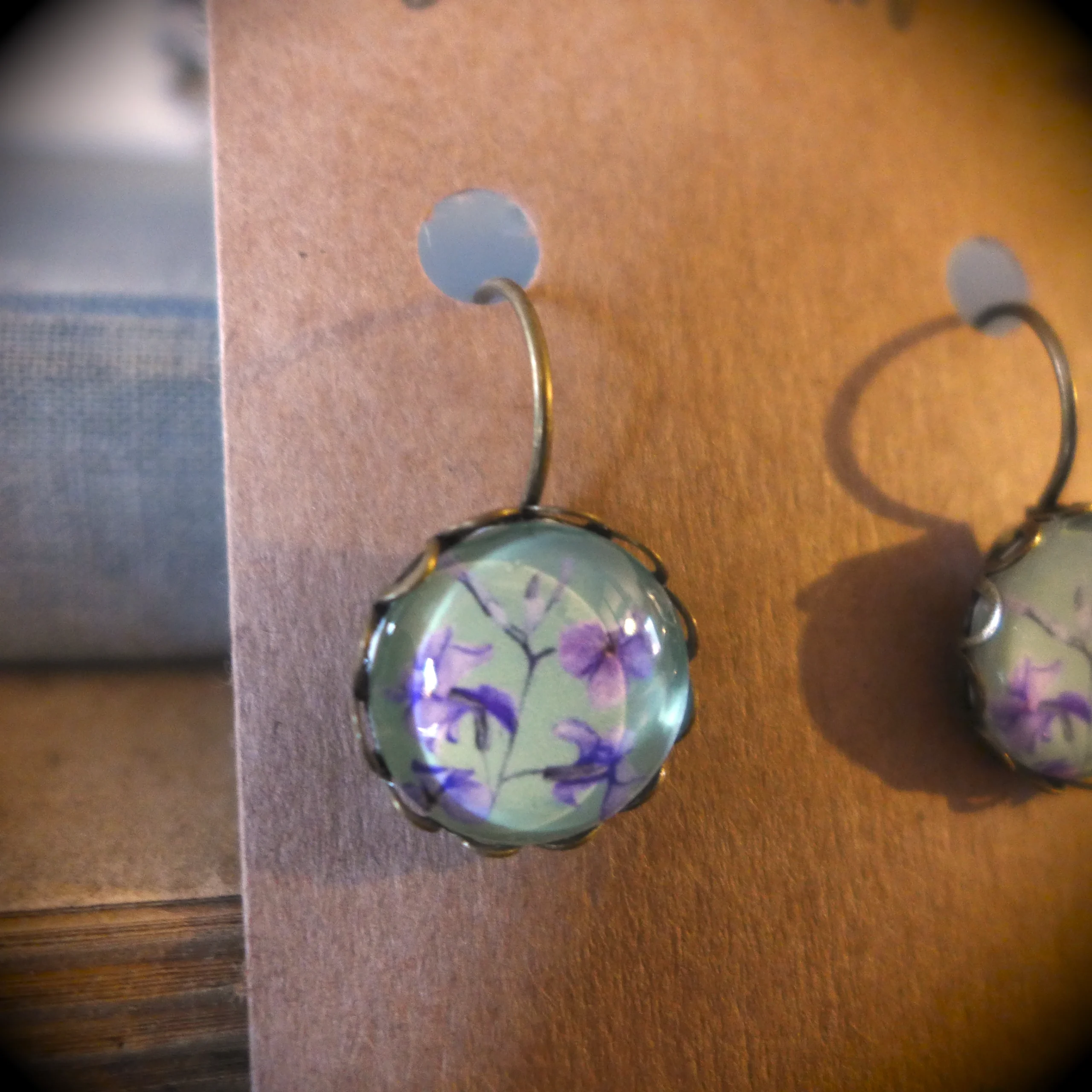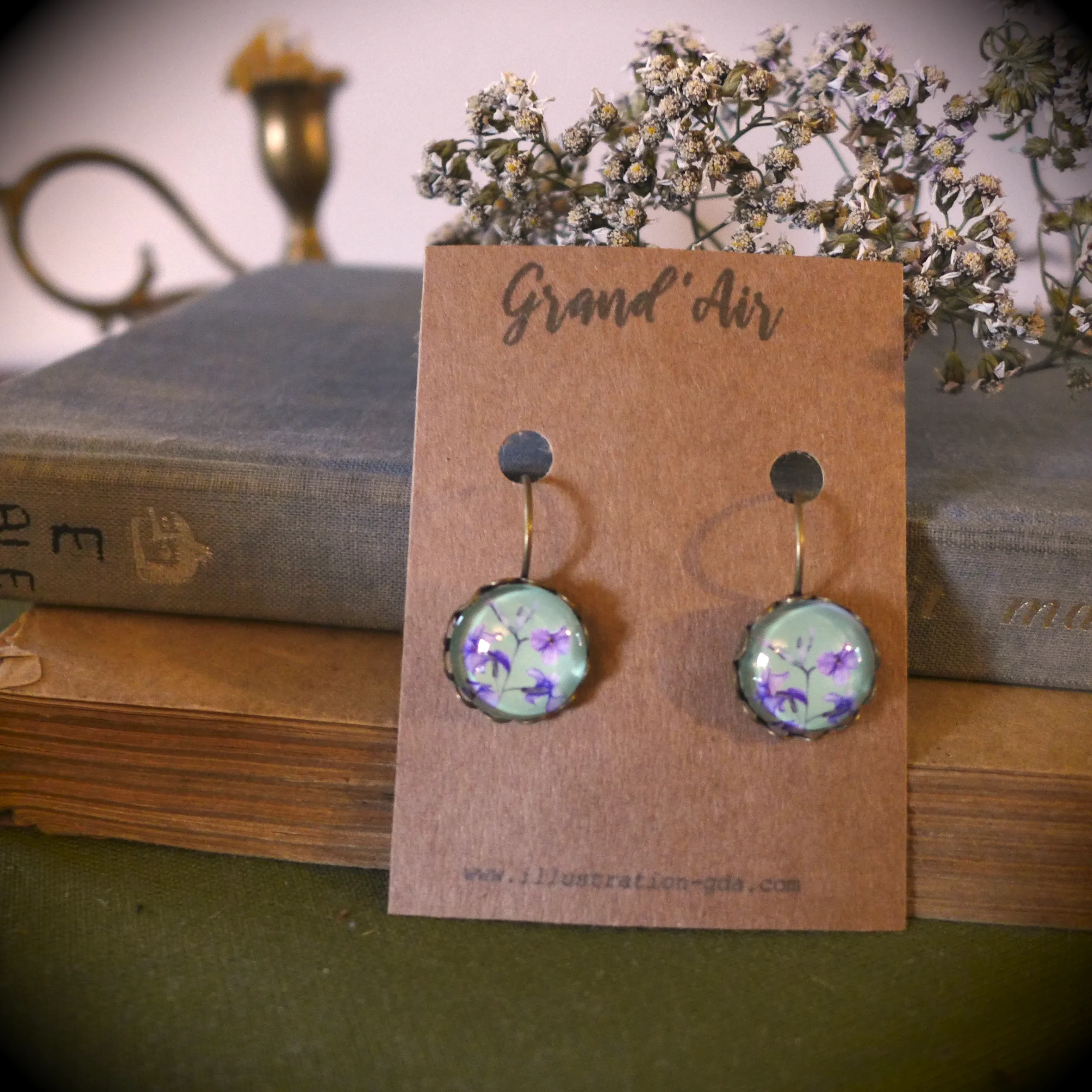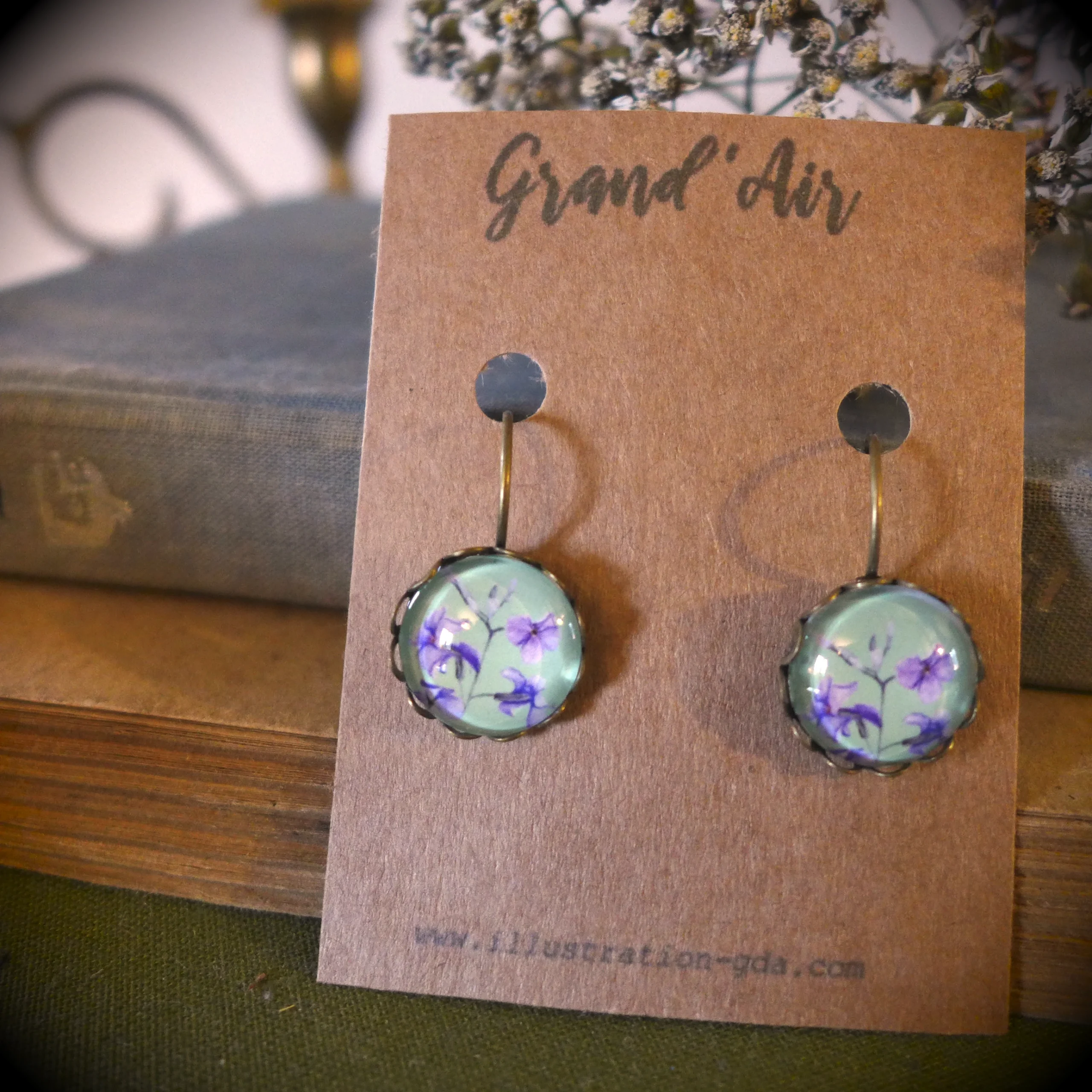 Boucles d’oreilles pendantes vintage Fleur de Giroflée arbustive.