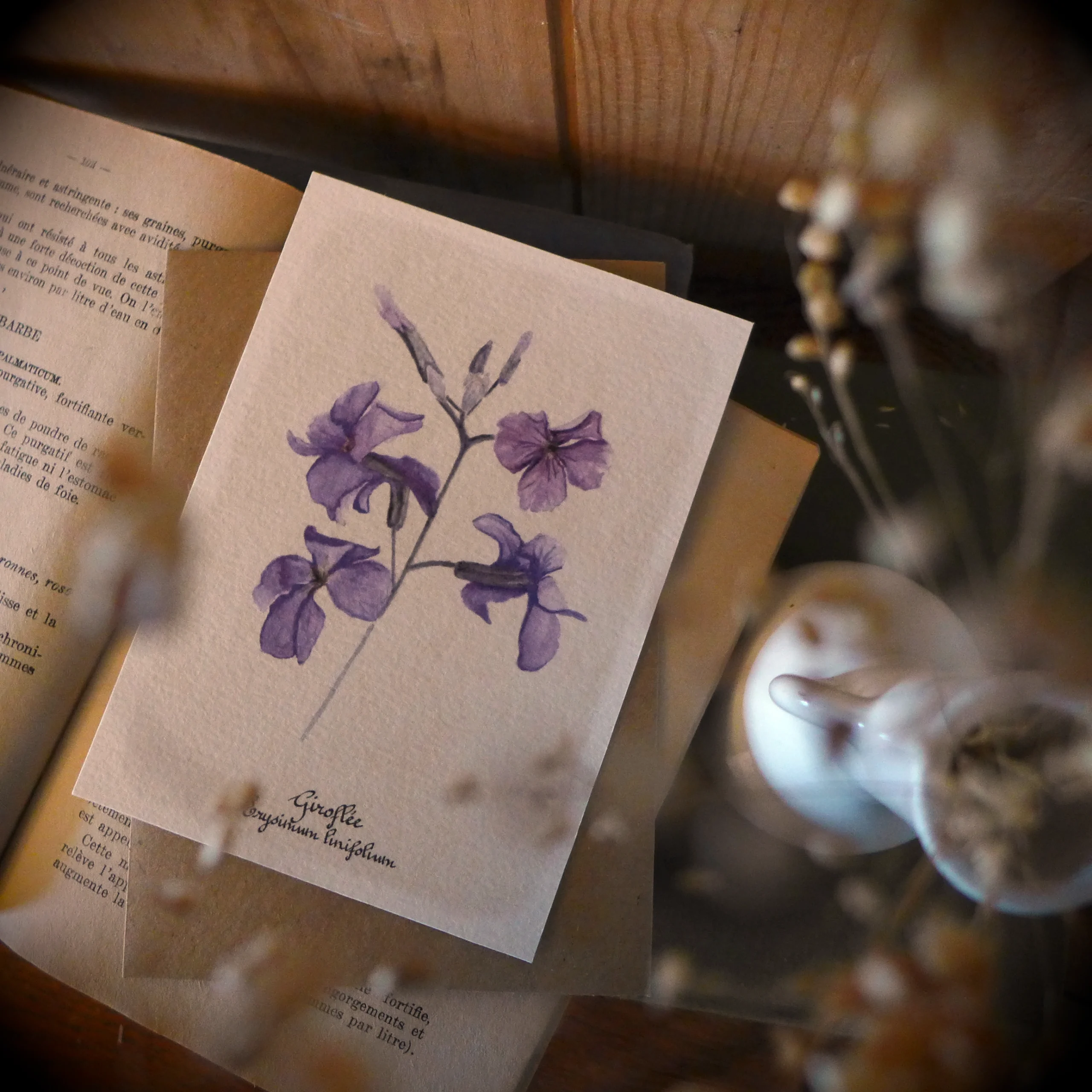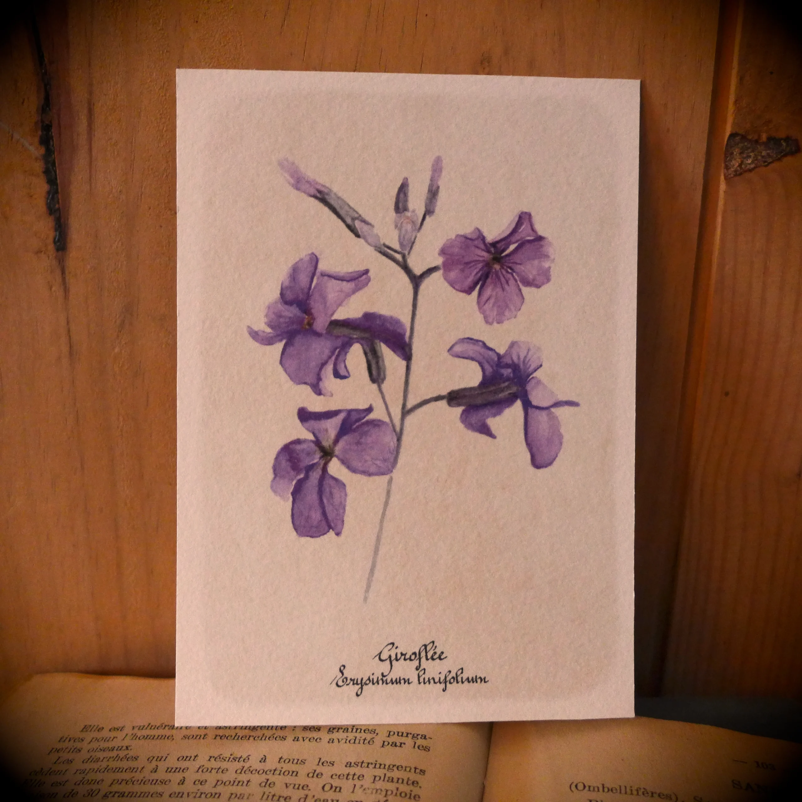 Carte illustrée Giroflée. Reproduction.
