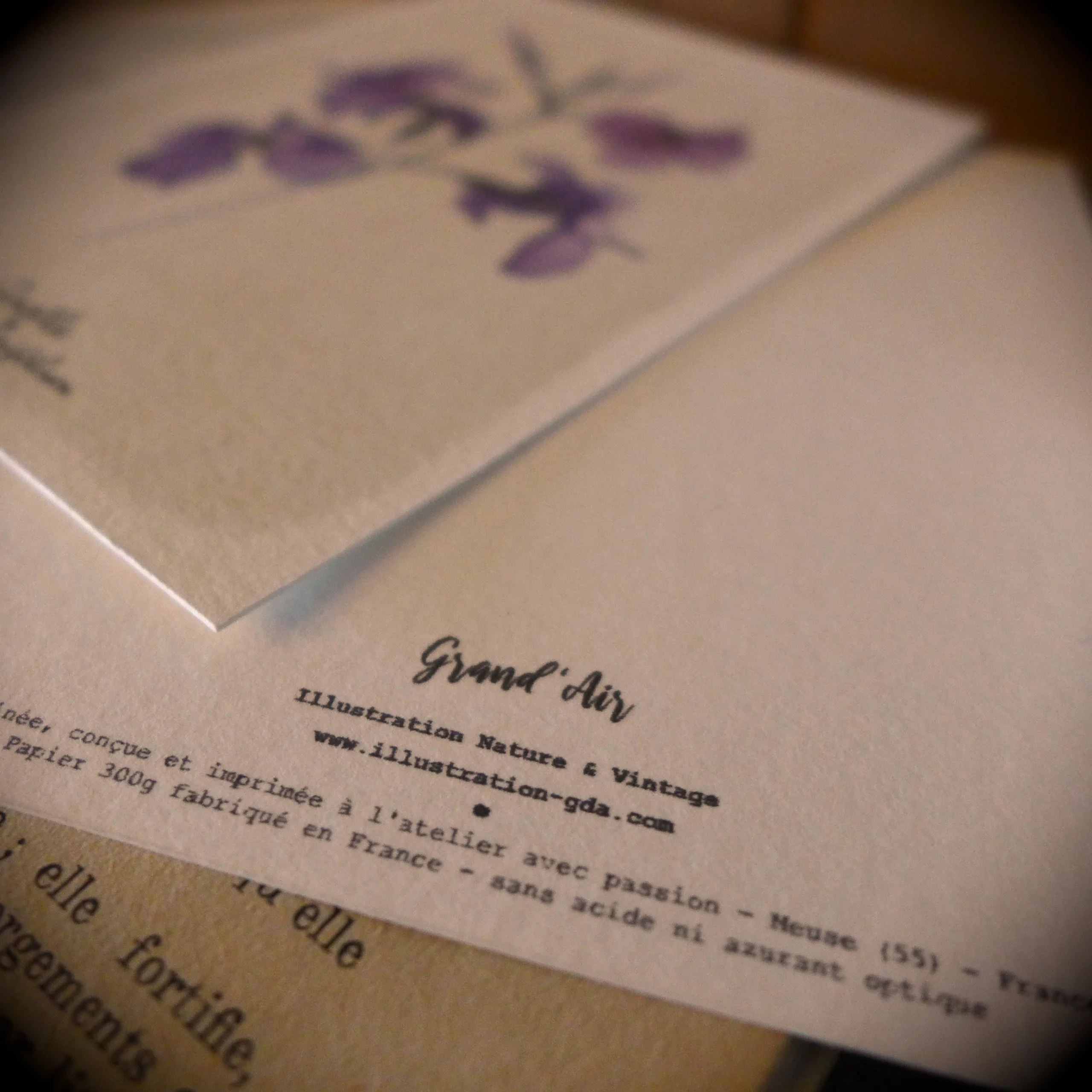 Papier texturé 300 g/m² (FSC, sans acide ni azurant optique, fabriqué en France).
